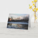 This note card captures a moment out of time. It was a very cold early morning. The pond was partially frozen. Snow was clinging to the weeds and brush. The sky was a lovely palette of blue, pink, gold and white. The water reflected all this beauty in a perfect mirror image. And the sun rose blazing through the trees to illuminate the magic!