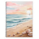 Capture the serenity of a beach at sunrise with gentle waves lapping the shore and pastel hues of pink, orange, and blue in the sky. Featuring scattered seashells and a distant sailboat, this peaceful design evokes calm and tranquillity, perfect for ocean lovers and relaxation-themed journals.