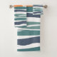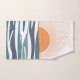 Abstract illustration of sunrise with orange sun and blue, white and turquoise sea waves decoration