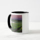 Sunrise colour in the distant fog behind mug