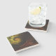 The coasters are gorgeous, a quality feel and heavy weight. They look like a precious archeological find. A rustic stone juxtaposed with a modern floral black and white print. I like the way the print goes slightly imperfect on the cut stone edges giving them a kind-of natural beauty.