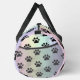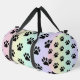 This cheerful Gear bag features a beautiful sunrise-like gradient from soft yellow to vibrant pink, adorned with classic black paw prints. It's a delightful Kit bag and an uplifting Weekender for bright adventures.