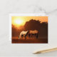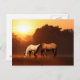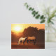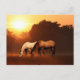 Buckskin and dun horses grazing in the misty sunrise photo postcard