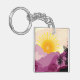 The graphic features a meticulously detailed landscape bathed in the soft hues of dawn, with the sun gracefully emerging over rolling hills and casting a golden glow across the sky. The vibrant colours and serene atmosphere make this keychain a visual delight and a perfect reminder to embrace new beginnings each day.