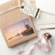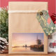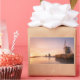 Sunrise over frozen river with windmills and reeds rectangular sticker