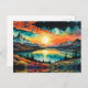 Sunrise over Mountain Lake as Moon sets. Postcard
