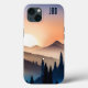 This cell phone case with rustic mountain landscape at sunrise can be personalised with your desired initials.