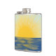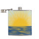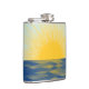 This vibrant graphic design features a glowing sun in radiant shades of yellow rising above the blue ocean, where broken waves reflect the light in a dynamic, imperfectly beautiful way. The simple geometric shapes and curves create a modern yet deeply meaningful image of morning at the beach, symbolising hope, renewal, and the promise of new beginnings.
