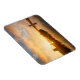 Rectangular photo magnet with a vibrant sunrise over a row of windmills and reflection in the water of the river on a beautiful morning in a countryside landscape in Kinderdijk in the Netherlands.