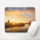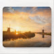 Photo mousepad with a vibrant sunrise over a row of windmills and reflection in the water of the river on a beautiful morning in a countryside landscape in Kinderdijk in the Netherlands.