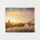 Photo wall tapestry with a vibrant sunrise over a row of windmills and reflection in the water of the river on a beautiful morning in a countryside landscape in Kinderdijk in the Netherlands.
