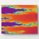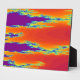 This awesome plaque.features a fractal that resembles a sunrise. On the left there are lots of purple patterns that look like wispy clouds of darkness and to the right of them are areas of orange morning sunshine.