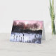 This holiday card conveys a sense of serenity and peace. The sky is tinged with pink as the sun rises over a frozen pond on Christmas morning. Trees and cattails ring the pond. The text reads: Wishing you a peaceful and joyous holiday season. It can be customised to suit your needs.