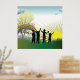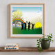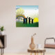 A scenic of children standing in the full sunrise and a rainbow. This design looks really effective on these Poster