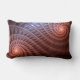 Lumbar support cushion design from "Sunrise, Sunset," an Apophysis fractal by Susan Wallace. Copyright © 2008, Susan Wallace. Hot pink spirals are connected by bowed rays of light on a field of radiant blue polygons. Design sized to fit rectangular lumbar pillow; square throw pillow also available.