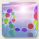 A 3D science fiction seascape created in Vue, depicting a light pink and lavender sunset behind a structure of multi-coloured spheres like giant atoms spiralling into a pale blue sea.