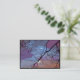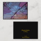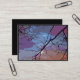 This lovely fine art artist trading card displays an abstract pattern of black branches against a sunset sky with rainbow colours of purple, blue, white, pink, orange, grey and magenta.