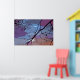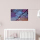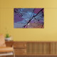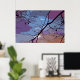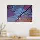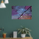 This fine art poster displays an abstract pattern of black branches against a sunset sky with rainbow colours of purple, blue, white, pink, orange, grey and magenta.
