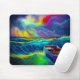 This mousepad has a cool artsy picture of a boat in the colourful ocean at sunset.