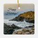 The sun sets behind the volcanic rock formations to Giant's Causeway in Northern Ireland.