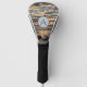 A modern monogram and nametag on a Photo of a romantic sunset at the Baltic Sea in Germany on a golf head cover.