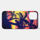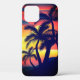 A vibrant phone case featuring silhouetted palm trees against a stunning sunset gradient.