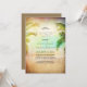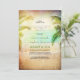 Rustic and vintage beach engagement party invitation with seaside sunset colours shades, teal sea and palm trees. Romantic fully customisable beach engagement party invitation perfect for destination - tropical engagement celebration too.