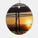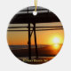 The ornament features a serene scene of a golden-hued sunset gently kissing the horizon, casting a warm glow over the shimmering ocean waves. Palms sway gently in the breeze, while seagulls dance across the sky, adding a touch of whimsy and authenticity to the design.