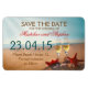 Romantic destination save the date magnets with red starfish in the sand, white sea shells, paper boat and two sparkling glasses of champagne. The picture was taken during a beautiful sunset in the beach, with a professional photo camera and is very sharp and clean. Best for the beach wedding save the date. If you need help with customisation I will be glad to help you, please contact me.
