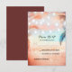 String lights, palms and pink - coral sunset at the beach wedding reply cards