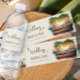 Personalised water bottle labels for your wedding guest welcome gift bags or wedding reception water station. This charming design features a watercolor scenes of a wooden wedding ceremony pagoda and a tiki cocktail bar on an oceanfront beach. Perfect for a casual or boho beach wedding, coastal chic or classy beach resort destination wedding. Background and text have a natural and brown colour palette, which you are welcome to change in the design tool. Co-ordinating wedding stationery and day of event decor can be found in our Sunset Beach Wedding collection,
