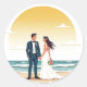 Includes 20 small stickers on one sheet. Perfect for lovers of beach weddings, this sticker features a stylish couple standing hand-in-hand on the beach with a stunning sunset in the background.
