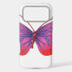 This beautiful square art print showcases a striking butterfly with a vibrant palette of shades of red, pink, and purple. The outer wings are a bold red, transitioning to a soft pink with delicate red spots, while the inner wings are a rich purple with a detailed blue-veined pattern. Available on many of the Achempong Zazzle collection, this piece is perfect for those seeking colourful butterfly wall art, a red and purple nature print, or a whimsical butterfly-themed gift.