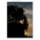 A sunset silhouette of a tree covered bluff, on the coast of Washington.