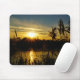 A winter sunset by a pond where ducks are swimming. A cloudy sky with some blue still visible and wind vanes can be seen with changing weather on the way. Reed plumes in the foreground create depth in the image. A reflection of the setting sun on the water.