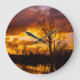 Sunset by the lake large clock