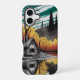 Capture the mystery and solitude of wilderness with this atmospheric phone case featuring a lakeside cabin, mirrored reflection, and dramatic sunset sky. The bold mix of warm orange, deep green, and monochrome detailing brings this moody forest scene to life.