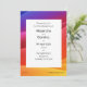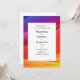 This modern wedding invitation has sunset colors from purple, through, reds and yellow in a gradient style wave design. The text is customizable for your own event.