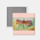 Original watercolor painted design by Sandra Gale featuring a whimsical dragonfly in soft shades of muted oranges, pinks and gold on a pale green background. Great soft design for anyone who loves dragonflies, gardens and summer sunset colours.