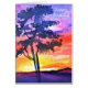 Beautiful colourful landscape sunset dreaming painting by artist Sacha Grossel of a red yellow and purple sunset landscape in the outback with a tree shadow in the foreground. Colourful original art in watercolor style.