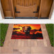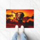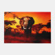 A bull elephant emerges from the brush, bathed in the scarlet sunset.