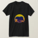 Sunset Elephants shirt for elephant and animal lovers. Features a silhouette of a mother elephant with her baby walking in the sunset. They are blue purple with a white outline.