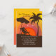 A retirement party invitation with a hint of sunny tomorrows featuring a sand-chair and umbrella under a palm tree.
