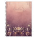 Colourful sunset gradient celestial notebook featuring moon phases and crystal accents. With warm peach, coral, and lavender tones, this dreamy design is perfect for creative writing and journalling.