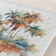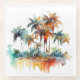Add a vibrant touch of tropical serenity to your tabletops with this stylish glass coaster, showcasing the captivating "Sunset Grove" watercolor design". Palm trees with rich, warm hues of orange, brown, and green stand tall, their fronds rendered with fluid artistry and subtle splatters for a dynamic feel. Perfect for protecting your surfaces in unique, natural elegance.