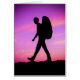 Silhouette Of A Hiker With Backpack Against A Purple Sunset