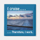 Magnet showing a sunset at sea expresses the sentiment of many who who live (and therefore must work) to cruise. the words, " I cruise . . . therefore, I work.:"