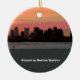 This beautiful ornament depicts a sunset over the Boston skyline. Orange colour streaks the sky while the skyline is a dark silhouette. The ornament can optionally have your special message on the reverse side.