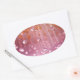 A 3D macro shot of a crystal chandelier. Myriads of strands of sparkling glass beads catch the light to create a lovely bokeh in the background. The blurred glass drops are reflected clearly in the sharply focused crystal balls in the foreground. The gold branches of the candelabra and soft pink atmosphere and lights give a sunset glow to the piece. Created in Vue.