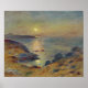 “Sunset in Douarnenez” is a stunning landscape painting by Pierre-Auguste Renoir that captures the serene beauty of a sunset over the Douarnenez Bay in Brittany, France. The painting features a vibrant sky filled with hues of orange, pink, and purple as the sun dips below the horizon. The tranquil waters reflect these colours, creating a harmonious blend between sky and sea. Silhouettes of boats and distant hills add depth to the composition, while the soft brushwork conveys an impressionistic quality that emphasizes the fleeting nature of the moment. Overall, this piece exemplifies Renoir’s ability to evoke emotion through colour and light, showcasing the enchanting charm of the coastal landscape.
